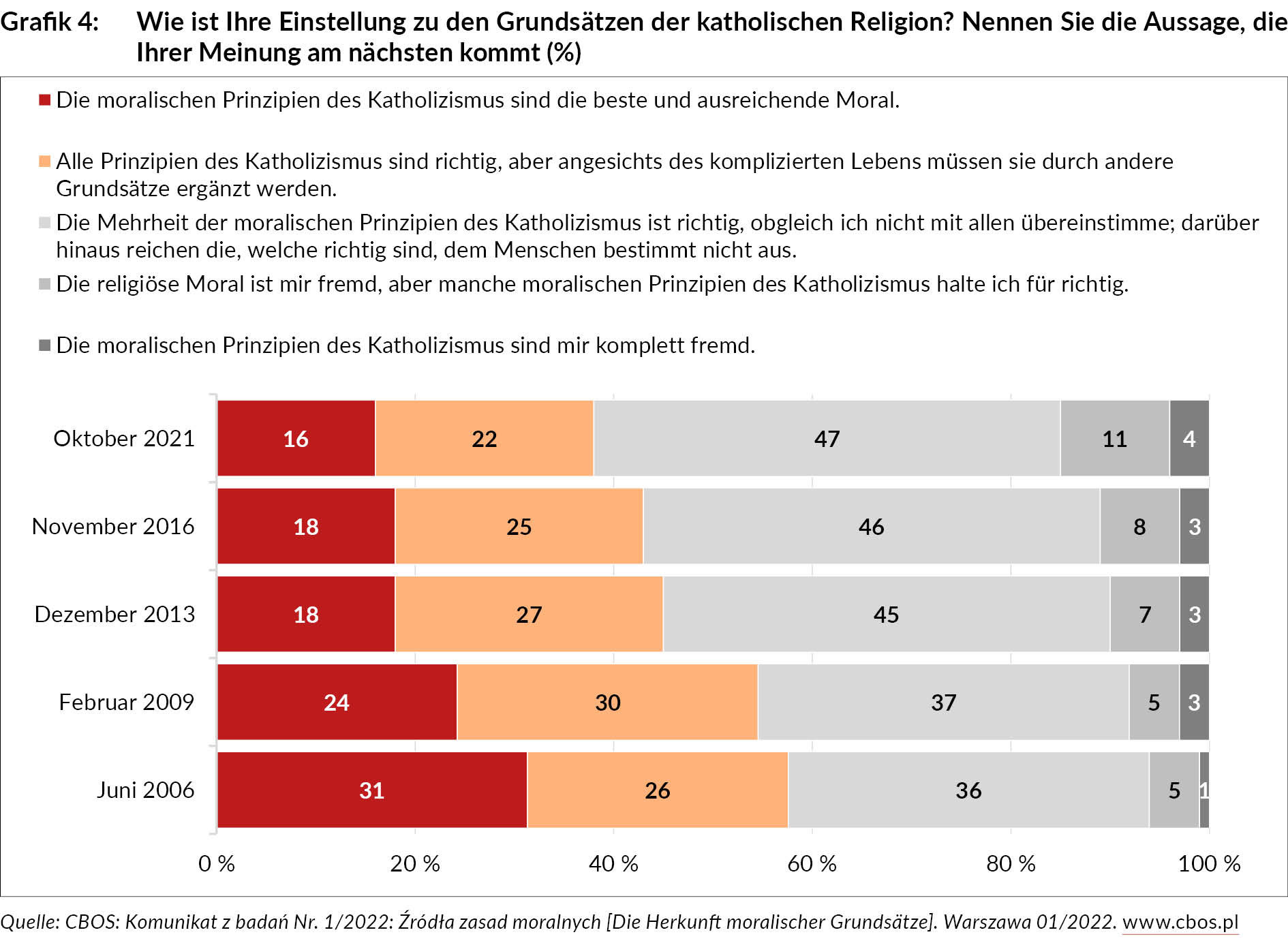 Das Bild der römisch-katholischen Kirche in Polen, wie wir es seit Jahrzehnten kennen, löst sich vor unseren Augen auf. Die größte Krise begann mit der Machtübernahme der Partei Recht und Gerechtigkeit (Prawo i Sprawiedliwość – PiS), die sich die Verteidigung des Katholizismus auf ihre Fahnen geschrieben hat. In den letzten Jahren verlor die Institution Kirche stark an Ansehen und die Menschen wandten sich massenhaft von ihr ab. Von einer schleichenden Säkularisierung der polnischen Gesellschaft kann immer weniger die Rede sein, denn die Veränderungen vollziehen sich immer schneller. Die Krise der Kirche lässt sich in drei aufeinanderfolgenden Etappen darstellen, die mit den folgenden Themen korrespondieren: Haltung gegenüber Flüchtlingen [der Text entstand im Herbst 2021, Anm. (…)