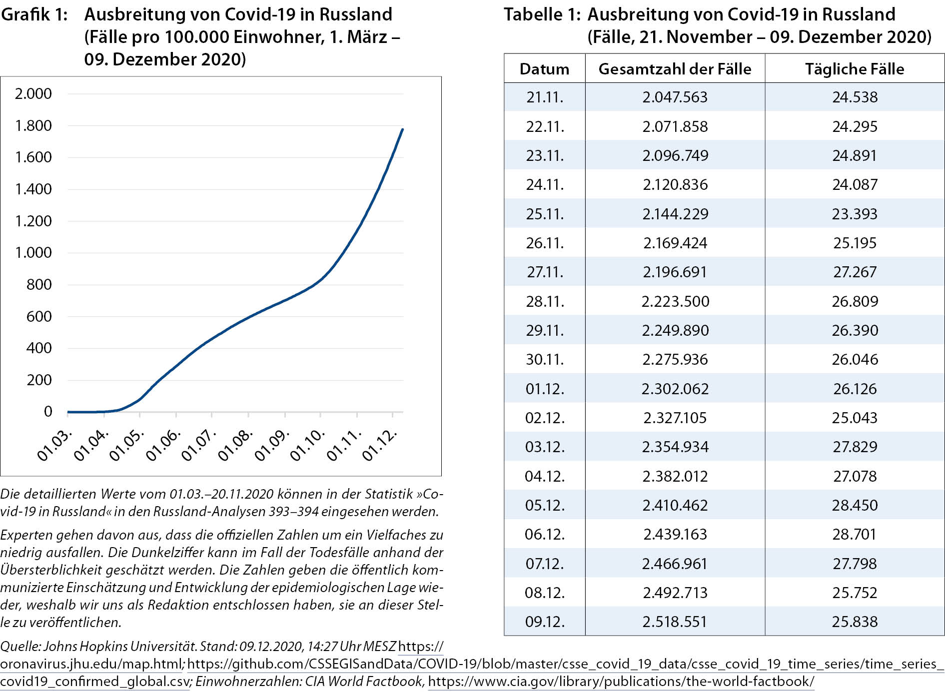 Die Verbreitung des Coronavirus erreicht in Russland laufend neue Höchstwerte. In dieser Lage bemüht sich der Kreml darum, die Covid-19 bedingte Sterberate niedrig zu halten und sich aus der Verantwortung zu stehlen. Die Mitarbeiter im Gesundheitswesen hingegen stellen sich der Verantwortung ihres Berufsstandes und bemühen sich darum, die Epidemie auch mit dürftiger Grundausstattung zu bewältigen. Währenddessen warten bereits die nächsten versteckten sozialen Herausforderungen auf sie.